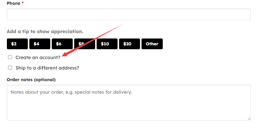On the checkout page, look for an option that says ‘Create an Account’ or a checkbox with a similar label.